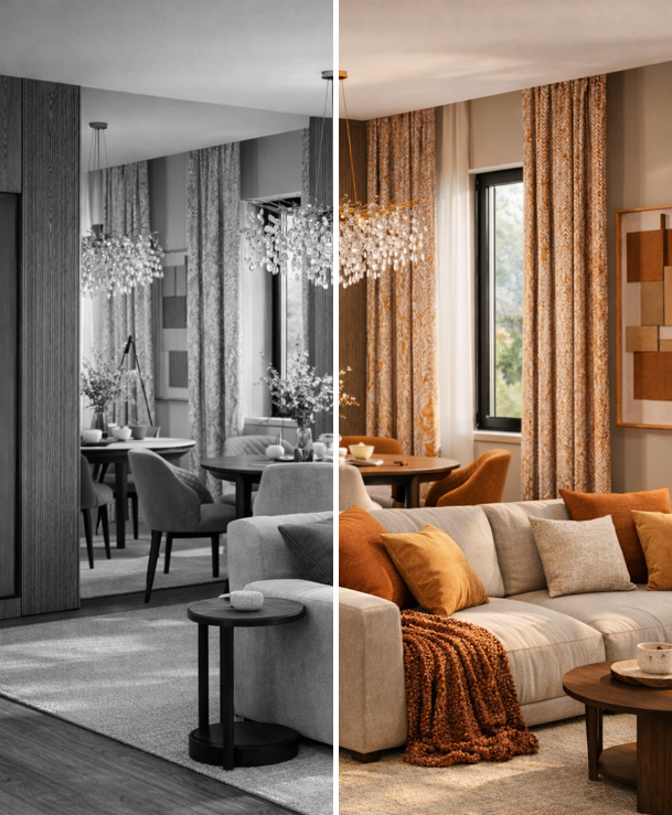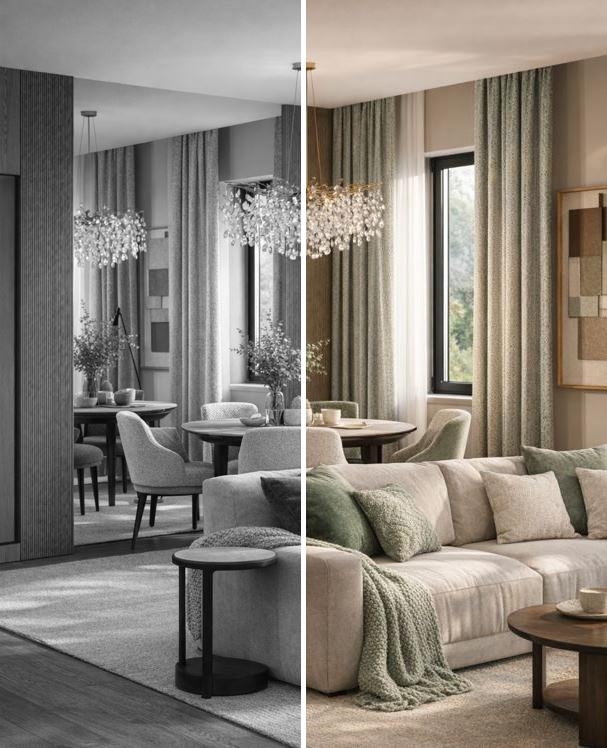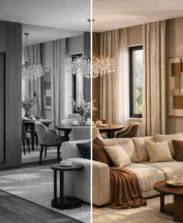 INTERIOR Development of 3D interior design visualizations for the future interior of a room, allowing you to see how your space will look after renovation or finishing.